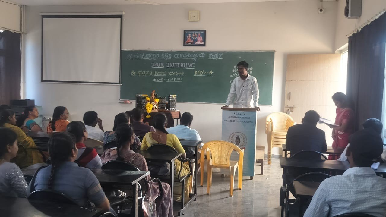 ONE DAY NATIONAL LEVEL SEMINAR 10.12.2022 INTERNATIONAL WOMEN'S DAY 10.03.2025 DR. B.R. AMBEDKAR JAYANTI CELEBRATION 14.4.2025 SWAGATOTSAVA (FRESHERS DAY ) 7.4.2025 KARNATAKA JANAPADA ACADEMY FUNCTION 17.4.2025 PRESENTATION OF DRAMA FROM STUDENTS 25.04.2025 & 28.04.2025 ORGANIZED S.U.P.W. WORKSHOP FOR STUDENTS CAMPUS SELECTION DRIVE 22.5.2025 STATE LEVEL WORKSHOP 24.06.2025 DIET VISIT with IV Sem Students 30.09.2025 Celebration of National Librarian's Day on 13.08.2025 CITIZENSHIP TRAINING CAMP HELD ON 27.09.2025 TO 29.09.2025 Special Lecture on "CUTTING EDGE SKILLS AND QUALITIES FOR PERSONALITY DEVELOPMENT AND GOOD TEACHER" 24.10.2025 Celebration of SAMBRAMA 2025 & DEEPADAAN 2025 on 04.11.2025 & 05.11.2025 Special Lecture on "CUTTING EDGE SKILLS AND QUALITIES FOR PERSONALITY DEVELOPMENT AND GOOD TEACHER" 24.10.2025